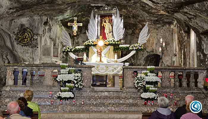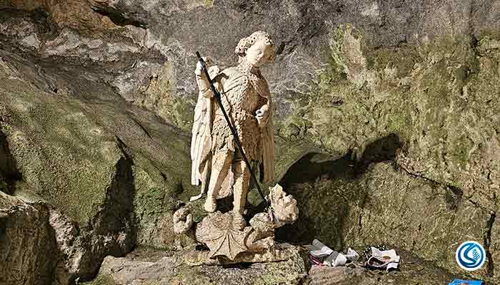 Preocupado com o que havia acontecido, ele foi ter com o Bispo que ordenou 3 dias de oração e penitência. Ao final do terceiro dia, São Miguel Arcanjo aparece ao Bispo e lhe revela quem é e que a caverna é sagrada para ele. O Arcanjo ainda diz que é ele próprio o guardião vigilante daquela caverna. Que "onde a rocha se abre, os pecados dos homens podem ser perdoados. O que é pedido antes da oração será concedido. Portanto, vá até a montanha e dedique a gruta à religião cristã".